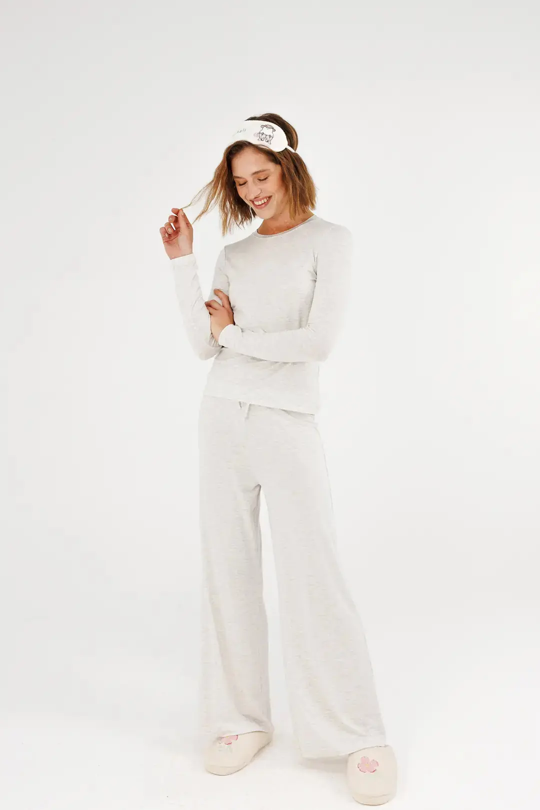 Geniş kesimli, bol paça pijama altları; rahat hareket alanı sunarken dinamik bir görünüm oluşturur. Minimal detaylarla tamamlanan bu pijama takımı modelleri, sade ve zarif bir ev stili yaratmak isteyenler için uygundur.